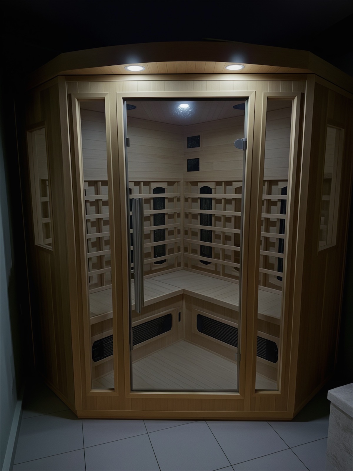 Сауната е оборудвана с цветно променящо се осветление с функция за промяна и избор между различните цветове. Всеки от тях дава различно усещане и изборът на цвят е индивидуален, според темперамента и моментното състояние на човек, използващ сауната. Така например зеленият цвят успокоява, червеният придава усещане за приключение, синият – за хладина и т.н.